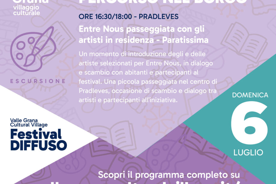 In occasione del “Festival Diffuso” organizzato da Valle Grana Cultural Village, Domenica 6 incontreremo gli artisti selezionati per il progetto...