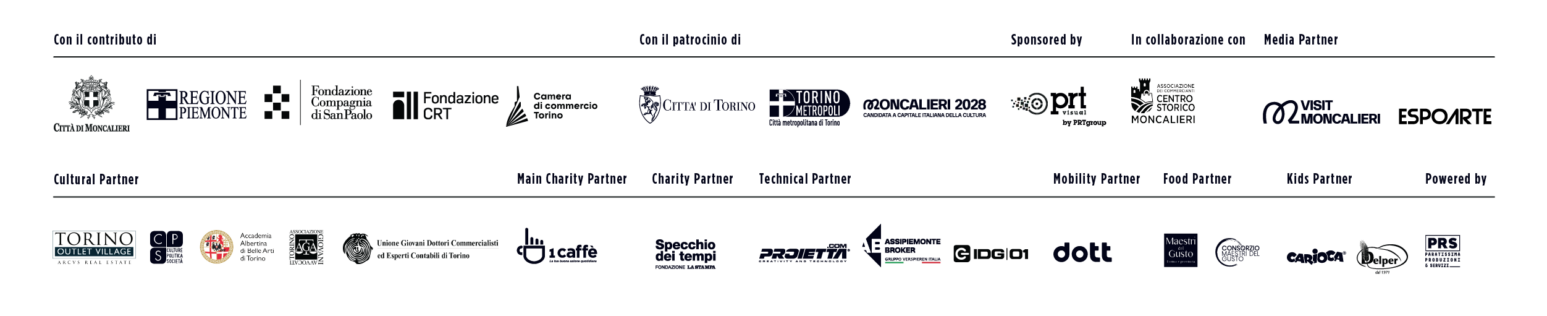 Il cuore nevralgico sarà il Real Collegio di Moncalieri, luogo storico e monumentale che diventa contenitore dinamico di creatività. Le sue geometrie e proporzioni, fatte di ordine e memoria, accolgono un presente che vibra di visioni artistiche contemporanee. Qui, oltre 350 artisti daranno vita a un percorso che attraversa arti visive, sperimentazioni digitali ed esperienze immersive.