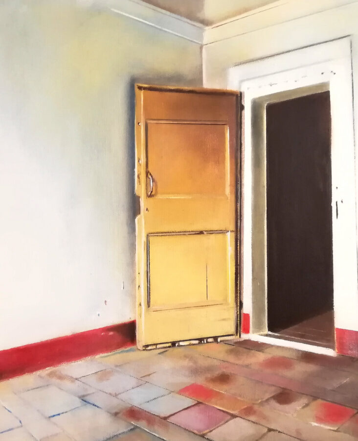 I “paesaggi”, ispirati ad ambienti domestici restano in bilico in un continuo rimando tra fotografia e pittura.